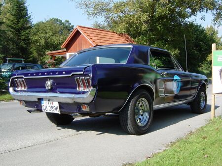 "nightmist-blue" Fotodokumentierte Vollrestauration eines rostfreien Florida Autos. Historie: Fahrzeug wurde in Florida ausgeliefert und stand viele Jahre. Böden, Schweller und Substanz waren jedoch sehr solide, deshalb wagte der Vorbesitzer eine Vollrestauration. Als Mustang kenner - er hatte schon 12 oder 14 Mustangs zuvor - sollte dieser Wagen sein Meisterstück werden. 4 Jahre Freizeit und viele viele Neuteile ließen den Wagen in seiner ursprünglichen Originalfarbe "nightmist-blue" auferstehen. Wir kauften diesen Wagen 1997 und benutzten ihn als Urlaubsauto in Florida. Leider musste der Wagen nach Deutschland umziehen. Auf den Auslieferungszustand 1966 wurde bei der Restauration Wert gelegt, dennoch erhielt der Fastback feine Modifikationen die der Originalität keinen Abbruch tun. Der Wagen wurde von der Zeitschrift Motor-Klassik im September 2002 zu einem Artikel verwendet, in dem der Journalist Bernd Woytal seinen US-Car Favorit testen durfte. Fahrzeug aus Fernsehwerbung