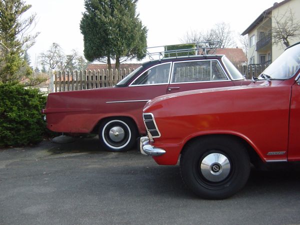 nach einer kleinen Wäsche der Felgen wird die matte Oberfläche vom "Rest" sichtbar. Deutlicher Unterschied zum A-Rekord das Heck mit runten Leuchten a´la Chevrolet Corvair...
