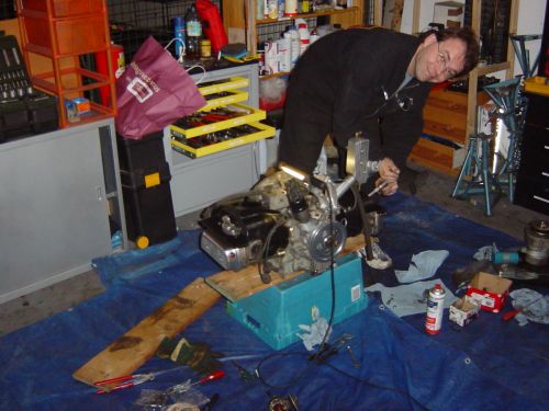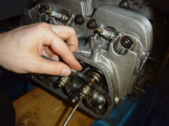 Ventile einstellen macht man idealerweise bei ausgebautem Motor, das ist bequemer. Ventilfedern wurden weicher genommen weil ja auch die bewegten Massen - leichtere Kipphebel und Stösselstangen aus Titan eingebaut wurden.